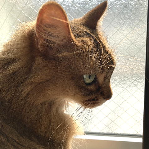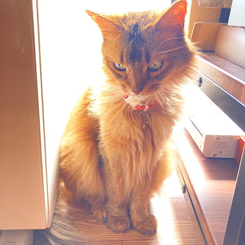 「さき」が朝のまだ明けてすぐの時間にテレビ横にスタンバイ。
