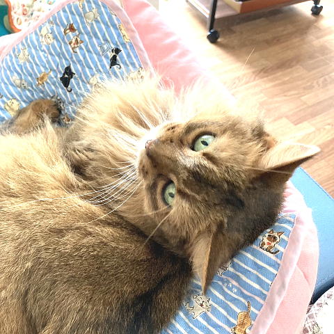 「さき」がビーズクッションに鎮座してます。
