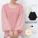 大きいサイズ レディース トップス | ぽわん袖 選べる レース 綺麗トップス _ オリジナル カットソー プルオーバー LL 3L 4L 5L 6L 秋 秋物 秋冬 ぽっちゃり ゆったり お腹 胸周り 二の腕 五分袖 かわいい おしゃれ プラスサイズ [IZM6481]