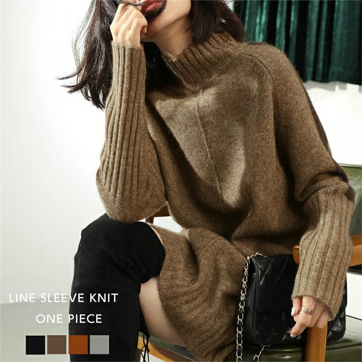 【11/30 10:00~24h限定 クーポンで2,480円】ニットワンピース セータートップス リブ袖 バイカラー ハイネック スタイルアップ レディース おしゃれ フリーサイズ メール便 2022秋冬新作 【atp210-337】【予約販売:12月15日/12月22日入荷予定順次発送】【送料無料】ヤ込2