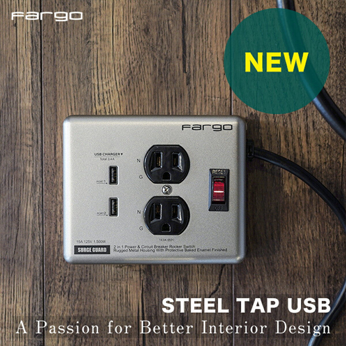あす楽/送料無料 電源タップ 全2色 USB 3.4A 急速充電 1.8m スチール レトロ 海外 コンセント 延長コード OAタップ スマホ 携帯充電 雷サージ スイッチ 壁掛け ガレージ インテリア おしゃれ シルバー 1m 2m ファーゴ Fargo STEEL TAP sale