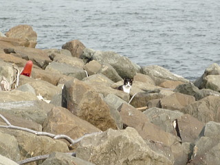 最近、時間つぶしで城南島に行きます。羽田空港から離着陸する飛行機がよく見えるところです。海浜公園があってアサリもいるらしいです。岩場にカニやフナムシなどの生き物がたくさんいて、猫が捕まえようとしていました。岩の隙間から頭を出してこちらを見ています。歩き出しました。こちらに向かって来ます。アップで・・・目の前まで来て、岩の隙間に頭を突っ込んでいます。このあと完全に岩の隙間に入って、姿が見えなくなりました。そのままお昼寝かな?