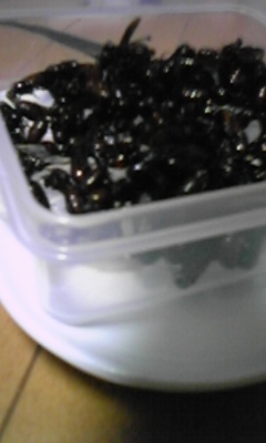 写真は友達の親戚がタイからきたときに持って来たたべもの(笑 ハチかな? それとも デカイ蟻かな? まー なんか味の薄い醤油みたいな味がした☆ そして もー一つは 虫ONドリアン(゜▽゜) ドリアン臭いキツイけど かなりうますー(´Д`)