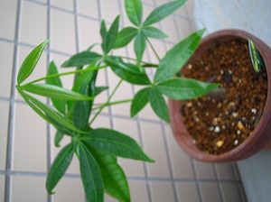たまに実家へ行って増えた植物を置いてきたりしています^^;このパキラは銀行のセールスの方がくれたらしく他にも観葉植物が3つほどありました。そんなセールスならウチにも来て欲しい~といいつつこのパキラを貰っちゃいました!!この爽やかな葉っぱが好きで、ずっと欲しかったのです。本当は室内に置きたいけど、今からハイドロに出来るかなぁ?↓写真をタテに出来なくて、見えづらくてすみません^^;