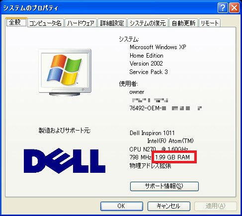 無事換装を終え、1GB → 2GB に容量が増えていることも確認しました。