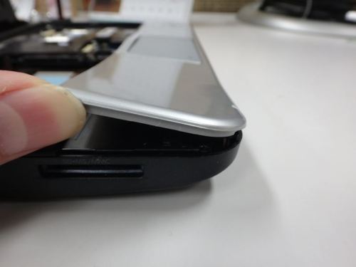 苦労したのは、このパームレストをはずす時ですね、バリバリと引きはがすような感じで、思いっきりやると折れそうなので少しずつ慎重に外しました。