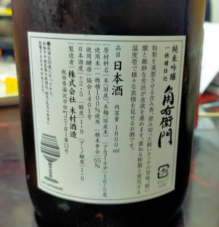 【日本酒】 角右衛門 純米吟醸荒責 夏酒 2025 1.8L