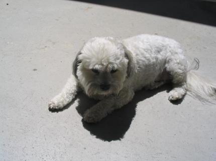 ここのところずーっとマフィンは拗ねてます。部屋の隅の方へ行き、じーっとこちらを見てるのに呼んでもなかなか来てくれません。どうやら食生活に不満なようなんですけど.........。マフィンは我が家に来る前から、人間の食べ物の味を知ってるようで、なかなかワンコの缶詰を食べてくれませんでした。でもいくつか缶詰を試して、やっとマフィンでも食べれる物が見つかったのですが、どうやらそれに飽きてしまったようで。(汗)味を変えるのに、他の種類のを足したりと色々工夫してるのですがあまり食べてくれません。おまけに最近『拗ねてる』し。(苦笑) 困った.........。 珍しく日向ぼっこ~。(暑くなって10分で部屋に引込む。笑) おにいちゃんのこのボール、アゴ乗っけるのに最高~♪
