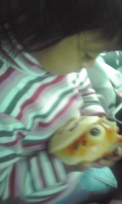今日は、いきなり朝一から事件が発生!長女が起きて来るなり、「あかん・・・ヤバイ鼻血やぁ~~~!!」と、言って大パニック~~~ポタポタ垂れてくる血をティッシュで受け止めて、わざわざ血の苦手な母に見せてくる「やめんかい!」「見て見て~うわ~すごい~どーしよーどーしたらえぇん??」長女も母と同じく血が苦手(2人でパニックに陥ってます)母 「うっわ!大量出血や~~ん!早よ鼻にティッシュ詰めて上向いて寝転びなはれ~!」「あかん・・そんなコトしたらあかんのや!保健でならったもん!鼻血の時は上向いて寝転んだらあかんのやで!」と、偉そうに言い返されました「じゃあ、その大量の血はどないすんの~~!?」すると、長女・・「あ~あかん・・気分が悪くなってきたぁ」「えーーー!?ちょっと!大丈夫かぁ!?しっかりせぇ~!」「貧血になって倒れそう・・」「もう~ゆっくりしてたら大丈夫やって!ちょっと横になっとき~!」と、言いながら、なぜか母も気分が悪くなっている「フラフラするわ・・・オエッ・・」父ちゃんの次は長女のハプニングどーしたんだろう・・普段鼻血なんて出さない子なのに・・で、その後、まだ眠い目をこすりながら起きてきた次女さん「母さん・・・おはよ・・」と言ったと同時にダッシュ彼女もティッシュを取りに行くまさか!?まさか!?「鼻血や・・・」そのまさかですやーーんお前もか~~~いどーした?どーした?みんなどーなっちゃったの?あ~えらいこっちゃ~次女さんの鼻にティッシュを丸めて詰めてると、うっぅ・・うっぅ・・うっぅ・・変なリズムで低い重低音が聞こえてくるなんじゃこの音・・ふと、ノアさんのゲージに目をやるとなんだかすごーく苦しそうにしているノアさんを発見涙目のノアさん・・気分が悪いのか吐きそうになってるどいつもこいつもどないしたんやーーしっかりせ~い!なんかにとりつかれてんのか(笑)!?1番最後に起きてきた父ちゃん・・やっぱり苦しそうだ・・「痛てててて・・・はぁ~」次から次へとホンマどーなってんの?おチビも、昨日の夜、鼻水出しながらちょっとしんどそうな感じで寝る前にグズグズ言ってましたしね・・・あっ・・ちなみに母&長男はアホ過ぎるので、元気いっぱいです(せめてもの救い・・笑)長女も次女も鼻血のトラブルに慌てましたが学校&幼稚園に元気に行きましたおチビ&ノアも、今はもう元気です(おいおい!そんなにギューッとしたらノアさんが潰れますよ~)残るは父ちゃんだけ~。少しづつ回復していますが、まだまともな食事を摂れていないのでとーってもしんどそうです明日は、どーしても仕事を休むコトが出来ない!と言ってますので明日に備え、今日1日ゆっくり休んで貰いたいと思いますでも・・まだこんな状態なのに、仕事に行かせて大丈夫なのかなぁ・・ハプニング続きの我が家・・早く落ち着けぇ~~~いやっぱり元気が1番ですね!誰かが病気すると、改めて気付かされます!皆様も、健康には充分気を付けて下さいね・・・母よりそれでは、今日はこの辺で(久しぶりに)今日のノアさんですおチビの腕から自力で脱出した後のショット(笑){あ~めっちゃ苦しかったわ~}FC2再登録し直しました!また頑張りますので応援ヨロシクお願いします