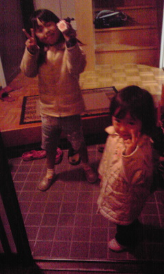 今朝、パソコンやってたらSちゃんママが「今日のチラシ見た?ビールが安いよ!」って電話をくれて、急遽、隣町の激安スーパーへ連れて行ってもらってました~いや~何やかんやと安くって楽しかったですぅ~いっぱい買い込んできました~給料日直後の買い物って楽しいですね~給料日前には、ピタっと動きが止まる私ですが・・・(笑)さて、それではさっそく、今日の日記へ行ってみたいと思います昨日、長女が修学旅行から帰ってきましたー!Sちゃんママが「一緒に迎えに行こうよ!」って誘ってくれたので迎えに来てくれるのを庭で待つことにしました昨日は、すごく寒かったので、次女&チビには、モコモコの上着を着せました6時前なのに、お外はもう真っ黒け・・この人達はものすごいテンションで「わ~い!わ~い!サヤちゃんが帰ってくるぅ~♪」って大喜び小学校に着いた時には、もうバスが到着していましたどうだったかなぁ・・楽しめたかなぁ・・なんだかドキドキしちゃう母。先生のお話が終わり、生徒代表の男の子が、保護者の前で、大きな声で挨拶してくれて感動しました6年生にもなると、素晴らしい挨拶をしてくれます。じーーんときましたそして、解散・・・。Sちゃんが、こちらへ走ってきました。ウチの長女さんは、なかなか姿を現しませんSちゃんママ 「あれ?サヤちゃんは?」Sちゃん 「え?分からへん・・どこやろ・・」キョロキョロ・・辺りは真っ暗なので、誰が誰だかサッパリ分からないしばらくしてから、次女が 「あっ!サヤちゃんや!おった!おった!」そこには、お友達に囲まれて歩いてくる長女がいましたあかん・・また泣きそうや(←すぐ泣く・・笑)いろんな想いがあったので、思わず思いっきりハグしちゃいましたギューッと、抱きしめ過ぎて、長女が母の手をトントン叩いてギブアップ「アハハ~苦しかったやろ?おかえり!」「ただいま」ん?この顔!これは間違いない!楽しかったって顔だ!母は確信しました「楽しかったんやろ?」「うん」「何買った?」「手裏剣・・」「やっぱり・・笑」すると、長女と一緒に歩いてきた違うクラスのAちゃんが 「サヤちゃん×2!あのさ~」なにやらアニメの話を長女にしてるんだけど、大興奮してるのめっちゃマニアックな話なんだけど、それ聞いてた長女がいきなり、ものすごいテンションで話始めたんですえ?え?友達の前でこんな風に話す長女を、久しぶりに見たかも!(ウチでは↑こんなんだけど、友達の前では自分を作ってたから・・)そこへ、いつも長女と一緒に居てくれてる同じクラスのTちゃんも入ってワイワイと仲良く話していました帰りはSちゃんと、車の中でお喋りしながら帰りましたウチに帰ってから、じっくり話したかったんだけど「お土産は?早よ!早よ!」って、下3人がやかましくて・・コレは、お世話になってるおばちゃんに 大きい婆ちゃんと、父ちゃんの会社には八ッ橋!で、家には鹿のふん団子!鹿の”ふん”!? そんなのあるの?母 「さすがサヤ!なかなかおもろいもん見付けてきたがなっ!」爺ちゃん、婆ちゃん、おっちゃん・おばちゃん・・そして妹たちにも!「わ~可愛いお花のストラップや~ありがとう!サヤちゃん!」って、次女が長女に抱きついていました。ちょっと照れながら 「リホのそういうトコ可愛いなぁ~」って長女。自分には、手裏剣と鍵の付いたストラップだけ・・・長女は 手裏剣見せながら、すごく嬉しそうにしてました弟には、剣のキーホルダー(長男が喜びそうな物を良く知ってますね)長男は飛び跳ねて喜んで、さっそくお財布に付けてましたその後は、ゲームを出してきて始めちゃって・・・。その横に、気持ち悪いぐらいピッタリとくっついてる長男 いつも喧嘩ばかりしてるのに、1日会わなかっただけでと~っても仲の宜しいコト(笑)夕食の時に「友達とはどう?」って聞くと「Aちゃんは違うクラスやけど、めっちゃ話が合うんや!だから一緒に話してておもろかった。Tちゃんも、違う班やのにずっとサヤーって言うてきてくれてたし、他の子ともいっぱい喋ったで!夜は、好きな人の話で盛り上がってたわ~サヤは好きな人おらんから話、聞いとるだけやったけど、みんないろいろ教えてくれたで~。12時まで起きとこ!って言われたけど、聞きたくない話は聞かずに1番に寝たし」って、笑って話してくれましたなんか、何日か前の長女とはまるで別人のようでした。「そっかぁ~良かったわ、学校頑張れそう?」「う~ん。多分・・。頑張ってみるわ!」「よっしゃ~!あんたは強いなぁ~大丈夫や!これから!これから!」「いろいろあるけどね・・笑」「うん!そうや、いろいろあるさ~でも、ラク~に、ラク~に!自分らしく!」「うん。普通にしてみる。」「そうや!普通の自分でえぇんや、ムリせんと、ずっとそんな感じでえぇやん」「うん。あっ・・・」「何!?なんや!?まだ何か悩み事でも?」「母さんのメッセージカード!」「うんうん、入ってたやろ?」「みんなバカウケしてたで・・」ズコーーー嬉しかったとか・・ありがとう・・とかじゃない