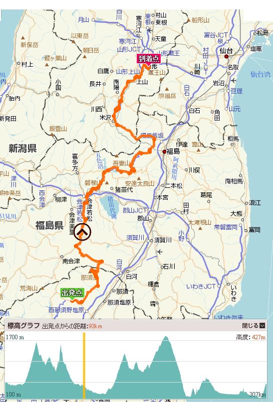 起床(6:30)→西蔵王公園発(8:20)→国13→県267→県170→蔵王駅→国348→県5→赤湯7-11(休憩)→赤湯マックスバリュー(休憩9:20~9:50)→広域農道ブドウマツタケライン→国13→福島→広域農道→国115→道の駅土湯(休憩11:20~11:40)→国115→中ノ沢温泉(入浴12:00~13:30)→猪苗代→県323→志田浜7-11(休憩)→国49→県9→湖南→県236→国118→湯野上温泉7-11(休憩)→下郷(給油)→田島7-11(休憩16:50~17:10)→塩原GV(17:45)