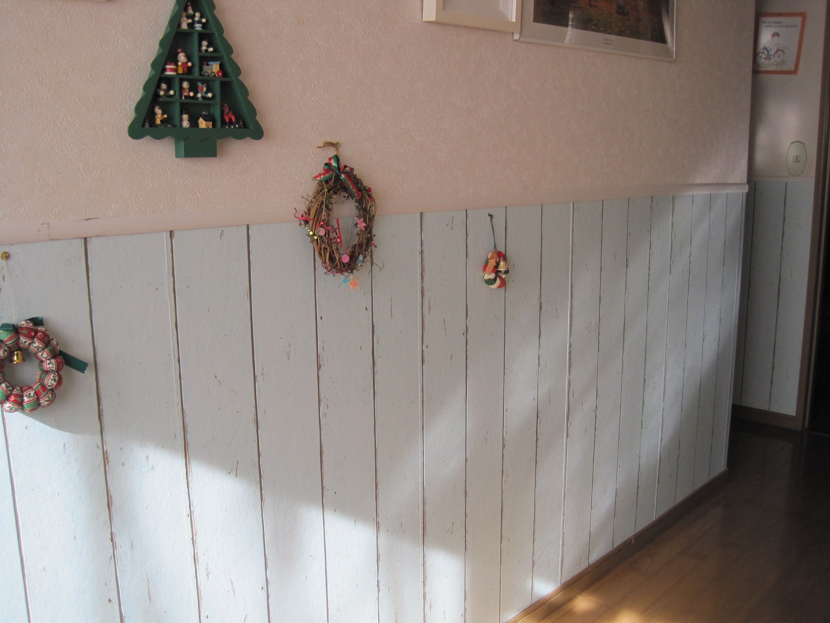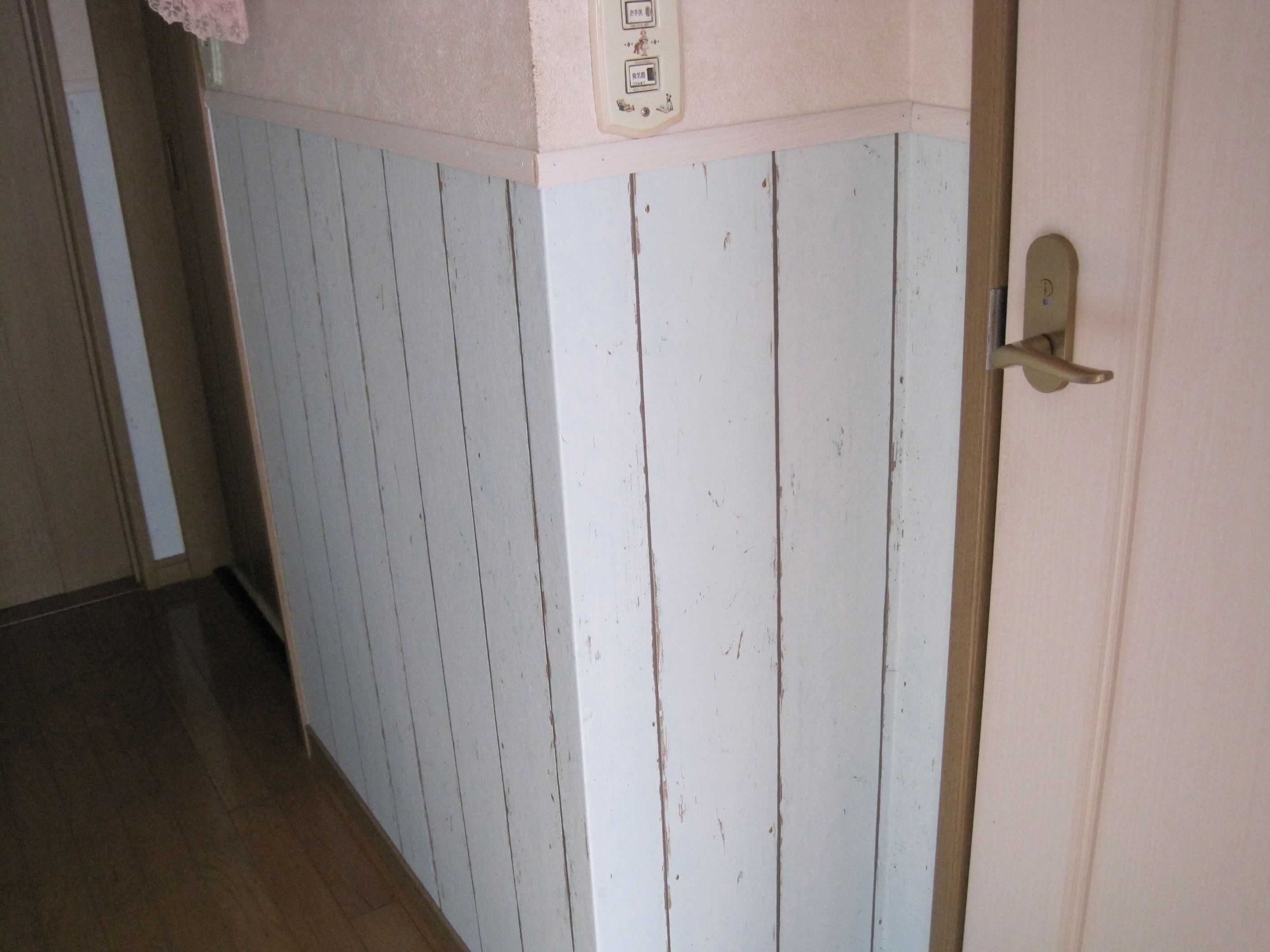 上の部分は大丈夫なので、「腰壁にしたらどうだろう?」とホームセンターに通ったり、腰壁作成記録をネットで見たり・・・いろいろ思い悩んで10年ほど。・・・(長すぎる。)