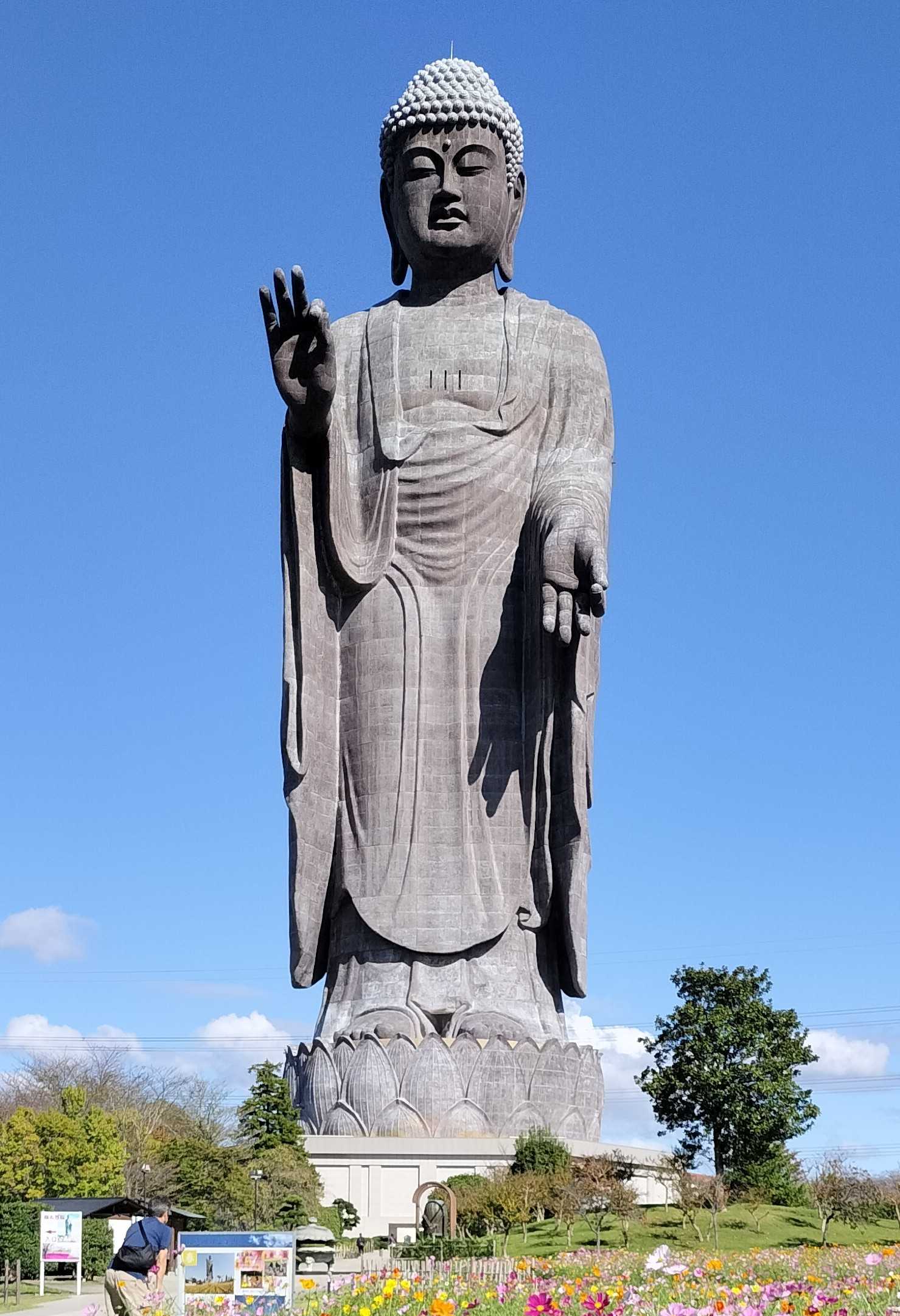 青い空に世界一の高さの大仏様が映えます