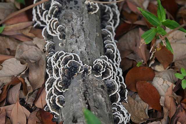 涼しくなって散歩も快適、そこで出会ったカワラタケ倒木で枯れ落ちた木に付き、土に戻す役割、モノクロ写真のような柄、とてもきれいに見えました。にほんブログ村散歩・ウォーキングランキング