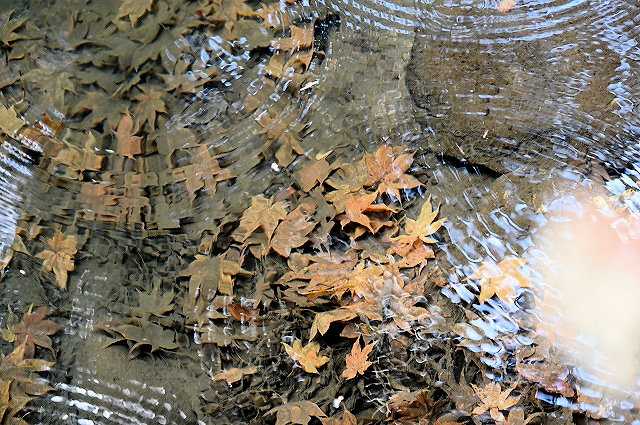 池に落ちた枯葉、冷たいだろうな~ぁ。にほんブログ村散歩・ウォーキングランキング