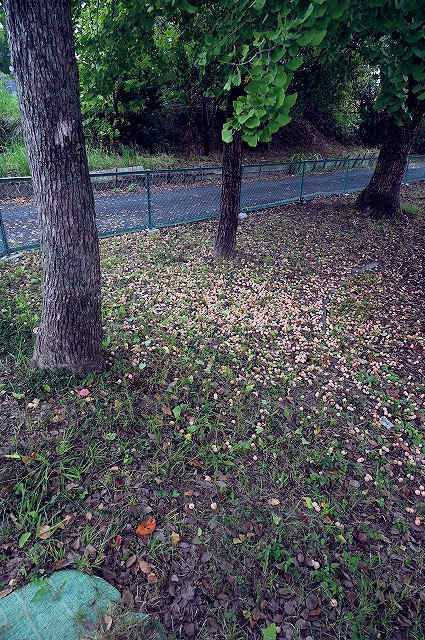 公園のイチョウの木の下、銀杏の実がいっぱい、実の果肉が腐敗を始めているみたい、公園には独特の銀杏の実の腐敗臭が漂う、この時期はこの公園には誰もいない、聞こえるのは、野鳥のけたたましい鳴き声だけ。にほんブログ村散歩・ウォーキングランキング