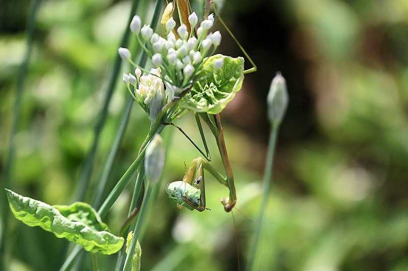 散歩中に面白い光景に出会いました、カマキリの食事をせんとするところ、カメムシを捕まえ、食べようかな としている場面、秋が近づいて、虫たちも忙しいようです。にほんブログ村散歩・ウォーキングランキング