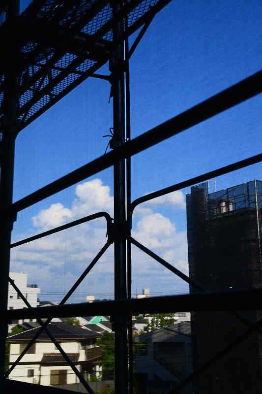 我が家は、まだ修繕工事中ですが、修繕工事中の網に向こうに入道雲、暑いはずです、夕立ちでも来て、涼しくなるといいと思っています。にほんブログ村散歩・ウォーキングランキング