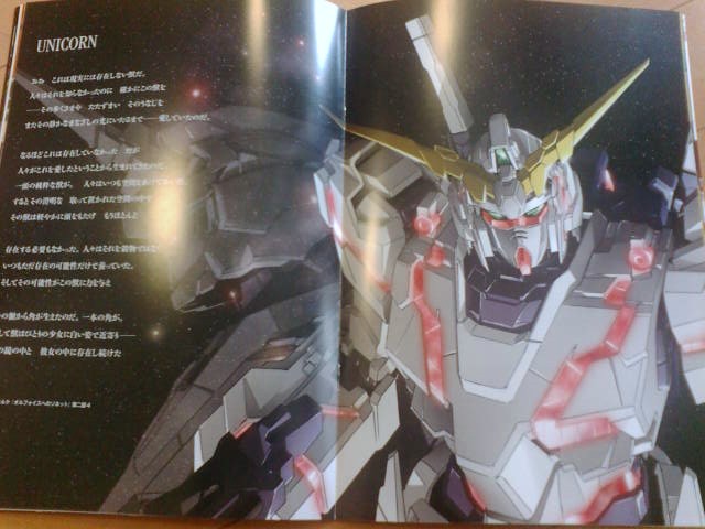 みなさんこんにちは。先日早速ガンダムユニコーンを劇場に観に行ってきましたよ~♪約1時間全6話?の1話目でしたが鳥肌モノ連続でした!!ガンダムファンの方は是非劇場で観て下さいね♪なんと全国で数館しか公開されないようですが、遠出する価値はありますよ~ブルーレイは持っていないので購入しませんでしたが、パンフレットだけでも入手しました。アムロとシャアは現在行方不明なようです(汗)今回のシリーズでは出て来ないかもしれませんね・・・仮面の男は一体誰?第2話は秋に公開のようです、是非また劇場公開して欲しいです♪