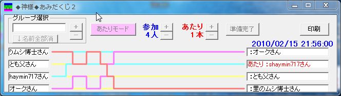 みなさんこんばんは。77777HITプチプレ企画にご応募ありがとうございました。最初と最後にご応募頂いた白筋カミキリさんかいムシさん当選おめでとうございます♪本日残り1枠の抽選を行います~抽選には神様あみだくじを使用しました。応募順にお名前を入れて~ドン!!shaymin717さん 当選おめでとうございます♪おおっ出産祝い!?ご希望の賞品が決まりましたらご連絡下さいませ~そして!!外れてしまった方にも残念賞をプレゼント!!ご希望の方にシクレを発送しますね~この日記にご希望の意志をコメント下さいませ。里のムシ博士さんは持っていらっしゃるので何か考えます(笑)それではみなさまこれからも宜しくお願い致します。