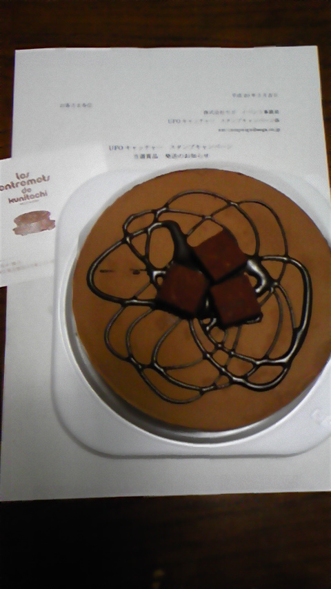 5周年のヘルクレスは外れちゃったみたいです。しかしセガからお届けものが…UFOキャッチャーを12回すると応募できるプレゼントに当たったみたいでそのケーキが届きました。毎月1回、あと2回(合計3回)ケーキが届くみたいです。全国50人のみの当選らしく、ある意味、ヘルよりかなりレアですね!これが味がまた美味しい!家族全員があっという間に食べちゃいました。セガさん、ありがとう!今日は大会の申し込みに行ってから、ランエボ5のタイヤ交換とカラオケ行ってきました。子供達はゆずの「スマイル」やコブクロの「蕾」を歌っていました。そして帰りがけに、今まで大会でお世話になったホームのSWが明日で閉店するということで、今までのお礼をかねてあいさつに行ってきました。寂しいですが店長さん初め、スタッフの方々には本当に良くしていただき、感謝の気持ちで一杯です。ありがとうございました。