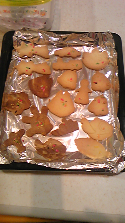 今日はかみさんお休みで、ゆうき、よしき、かみさんの友達2人とその子供達の5人で大型スーパーのクッキー作りに参加してきました。よしきは2回目、ゆうきは初めての参加です。こちらがよしきの作品です。そしてゆうき大好きなヘルクレスです。少し食べさせてもらいましたが、美味しかったです。その後はよしきは女の子2人とボールプールで、ゆうきは男の子と大怪獣で遊んだみたいです。パパが帰ってくるなり、次の子がEXタイラント引いたみたいで残念がってました。