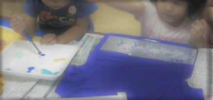 地元公民館でのステンシル講座子供たちも参加してにぎやかです