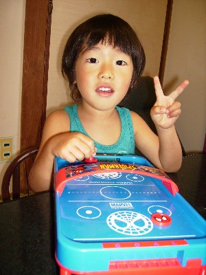 7月24日(火)旅行の疲れがドッと出て、今日は家でゆっくり過ごしたよお土産で買った、スパイダーマンのエアホッケーをしたよエアーがちゃんと出て、小さいけどちゃんと楽しめたわこれが結構面白いでも恵翔が負けると本気で怒るので、勝たないように頑張ったよ(笑)ようやく2秒程度タッチ出来る様になりました今日で10ヶ月になりました今日の恵翔と奏衣*******************************7月25日(水)旅行から帰ってきて2日目。更に疲れが・・・という事で、今日もほとんど何もせず恵翔と奏衣は元気なんだけどなぁ********************************7月26日(木)今日は夏期保育でしたしばらくお休みだったけど、恵翔はやっぱり幼稚園が大好きみたい今日の奏衣今日の恵翔と奏衣*********************************7月27日(金)今日も夏期保育で、元気に登園して行ったよ奏衣が「ちょうだい」を出来るようになったよ微妙にね(笑)奏衣が何かを持ってるときに「ちょうだい」って言うと、渡してくれるようにもなったよそれが超可愛い(タダの親バカ)*********************************7月28日(土)今日の朝は初めて奏衣にパンを持たせて食べさせたよ恵翔の時には汚れるのが嫌で、させなかったんだよね奏衣は凄い勢いで食べてたわ午前中は庭でプールに入ったよ今回奏衣は全裸(笑)そして今日は幼稚園の夏祭りでした年中さんと年長さんは夕方に神輿などもあったけど年少さんは夕方から、夜店だけの参加だったよ焼き鳥などを買って、園の中で食べて次のお祭りへ今日は宮崎の「えれこっちゃ祭り」があったのでそっちのお祭りにも行ってきたよそれがすっごい人で大変だったわ今日はとても充実した1日だったよ**********************************7月29日(土)今日は午前中にはお買い物おそろい恵翔&奏衣お昼からは噴水のある公園に行って水遊びしたよそれにしても毎日毎日暑い奏衣は下から出てくる噴水に号泣だったけど恵翔は楽しめたみたい夜は花火をしたよ早く奏衣も一緒に楽しめるようになるといいな***********************************7月30日(月)今日は夏期保育で元気に登園した恵翔家に居るより、よっぽど楽しいみたいで何よりだわ奏衣が時々見せるセクシーポーズなんだけど・・・やっと撮影に成功した*************************************7月31日(火)7月最後の夏期保育でした今日も楽しめたみたいで、良かった良かった体操服を着て行っても、園庭で遊ぶと汗をかいてTシャツに着替えて帰ってくるよ今日も迎えに行くと、園庭で泥団子を作ってたよ