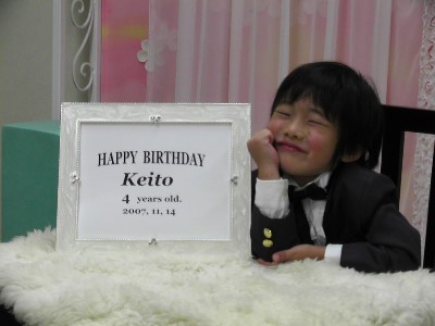 11月10日(土) 今日は宮崎市内の私立幼稚園の教職員で企画運営された「幼稚園フェスタ」に行って来ました 恵翔の通っている幼稚園の先生達は、ピーターパンの劇で「インディアン」を演じていたよ恵翔は担任の先生が出てくると「○先生~」と叫んでたよ劇も楽しかったけど、最後に色んな幼稚園の園児達がスライドショーで流れて、その時に流れてた曲もマッチしていて感動してしまたったわ。あやふやなんだけど、こんな仕事他にはない子供達と泣いたり笑ったりとかいう歌詞なんだけど、何と言う歌か知っている人いませんかすごく気になってるんだけど、何しろ私があやふやで 今日の劇を見て思ったけど、幼稚園の先生は本当に大変なんだなぁ、って。幼稚園が終わって、集まって劇の練習をしたりそれだけじゃなくても他の仕事もいっぱいあるし思った以上に大変な仕事なんだね。 それにしても今日はとにかく暑い1日だった今日は半袖で良かったかも 午後からは恵翔の誕生日の記念写真を撮りに行ったよ今回もビデオから抽出してみました 何故か誕生日にこの衣装旦那が押してきたので。。。 お正月に向けて、着物でも撮ってきました 11月11日(日) 昨日の暑さから一転、今日はかなり寒かった~そろそろコタツを出さなきゃなぁ。 今日は朝から旦那と恵翔は草野球へ私と奏衣はお留守番寒いし奏衣のお昼寝中には、幼稚園で使うクリスマスブーツを作ったよクリスマス会でサンタからプレゼントを貰うのに使うブーツ高さが50cmくらいの大きなサイズで、デザインを考えるのが大変だったわ サンタさんからプレゼントを貰った後に、ブーツを披露しまぁす(笑) 泡風呂の入浴剤を見つけたので試してみましたすっごい泡でビックリ 泡風呂を楽しみにしてたのに、私の番の時には既に泡がなくなって普通~のお風呂になってましたとさ 11月12日(月) 奏衣の可愛いポーズは、人差し指をホッペに当てるポーズなんだけどなんとそのポーズをする時に「かわいい~」って言うようになったよもちろんハッキリと「かわいい」とは言ってないけど「かわいい」って聞こえる凄いぞ、奏衣ただの親バカ(笑) 11月13日(火) 今日は幼稚園の11月生まれの誕生日会でした誕生会には、その月の生まれの母親がご馳走を作るのが決まりなのでおじぃちゃんとおばぁちゃんにに来てもらって奏衣をお願いして9時過ぎに恵翔と一緒に幼稚園へ 恵翔はクラスに戻って、私は食事の準備下準備が終わった頃からお誕生日会の始まり仕上げは給食の先生にお任せして、恵翔と一緒にステージへ。順番にマイクを持って喋らなきゃいけなかったんだけど、かなり緊張したまずは恵翔が自分の名前と、歳と、お約束事を発表それから母親の私が、子供のいい所を発表昨日ずーっと練習してたのに(笑)いざとなったら緊張して半分以上忘れたでも本当に言いたい事だけは言えたかな担任の先生からも恵翔のいい所をみんなに話してくれたり それから母親達の出し物で、ジェスチャークイズをしたよそれもまた緊張した~ それが終わってからはご馳走の準備恵翔と一緒に食べて帰ってきましたいい誕生日会だったわぁ 最近の奏衣はテレビのチャンネルを変えたり、消したり楽しいみたいです 11月14日(水) 今日で恵翔が4歳になりましたゆっくり準備をしたかったけど、あいにく今日は午前中保育で11時半にはに帰って来たよ恵翔は2日連続のお誕生日会羨ましいわ・・・ 誕生日プレゼントは本当に迷ったけど、アドバンスドライブというゲームにしたよ。3歳の誕生日に「ビーナ」をプレゼントしたんだけど、最近他のソフトも上手に出来るようになったし、持ってるものは知育ものだけなので、今回は車関係のものにしたんだぁハンドルが付いていて、本当に運転してるみたいで恵翔は大喜び 恵翔、4歳のお誕生日おめでとうこれからも元気にスクスク成長してね 今日の奏衣アクアが大好きみたい 11月15日(木) 今日は幼稚園の七五三参りで、みんなで神社へ出かけたそう千歳飴を持って帰ってきました 今日は夕方に回覧板が回ってきて、恵翔は「恵翔くんが持って行く」というので、恵翔にお任せする事にしたよでもやっぱり心配なので陰からこそ~っと見てたんだけどねちょっと前まではチャイムが届かなかったハズなのに、きちんとチャイムを鳴らして回覧板を渡して、お菓子を貰って帰って来たよ(笑)恵翔はこのお菓子が目的なんだけど 近所の人には本当~に良くしてもらって有難いです 最近の奏衣のブームこの格好で足元から覗かれるのが好きな奏衣(笑)お互い目が合うと倒れて、嬉しそう~に笑うんだよね 11月16日(金) 今日は希望もあって、恵翔はお残り本当に幼稚園生活を満喫しているみたいですねぇ 奏衣が「いただきます」のポーズを取るようになったよだから、「ごちそうさま」も出来ます(笑) 今日の恵翔と奏衣 11月17日(土) 今日は午前中に家族4人でインフルエンザの予防接種へ痛かった・・・ それから野球の日本代表が練習に来ていたので見に行ってきたよ ダルビ