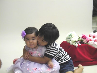 9月22日(土)今日の午前中は、記念写真を撮りにスタジオアリスへ24日には奏衣もとうとう1歳だもんね7月にも恵翔と一緒に撮ったんだけど、その時には人見知りも激しくて、泣いてばかりで大変だったんだよね今回も心配だったんだけど、何とか「タマゴボーロ」で乗り切った(笑)ビデオ撮影はなので、いっぱい撮ったよ~ビデオカメラから撮影風景を抽出してみましたぁ今回は4着にチャレンジ余り衣装を着すぎると、選ぶ写真に困るんだよねぇ家に帰ってから恵翔と奏衣は、「秘密基地」で遊んでたよ今日は秘密基地に寝るという恵翔。いつもは閉じる、寝室の隣の部屋の襖を開けて恵翔は秘密基地の中で就寝途中でやっぱり1人じゃ嫌~と言ってくるかと思いつつ夜中見に行ってもグッスリでした写真を撮ったんだけど、データが消えちゃった*********************************9月23日(日)秘密基地で眠った恵翔朝まで秘密基地の中でグッスリでしたよ恵翔も成長したのねぇ今日の午前中は、旦那は庭の剪定恵翔も庭遊びを満喫私と奏衣は室内でゆっくり~1歳を目前にしてまだまだ歩く気配のない奏衣を、歩行器に乗せてみましたぁ最初は喜んでたけど、思うように行かずにイヤイヤ今日は恵翔と奏衣のとってもセクシーな写真が撮れたよお風呂まで奏衣を運んでくれる恵翔それと、今日も恵翔は秘密基地の中で寝るというので、お風呂に入ってる間に、一生懸命秘密基地を組み立てた母グッスリ寝てたんだけど、朝方何か声がする・・・寂しくて泣いてる恵翔でした(笑)やっぱり途中で目が覚めて1人は寂しいよねまだグッスリ寝てる時の恵翔を撮ってみました**********************************9月24日(月)今日で奏衣が1歳になりました~本当に1年って早い入院なんかもして心配もしたけど、元気に成長してくれています今日の午前中は、恵翔のリクエストのプラレール奏衣は動く電車を追いかけて楽しんでたよ夜は、奏衣の1歳のお誕生日のお祝いをしたよまだ奏衣は食べれないので、料理を楽しんだのは私達だけ~早くみんな同じ物が食べれるようになるといいな奏衣はまだロウソクが消せないので、代わりにお兄ちゃんが消してくれたよ奏衣1歳のケーキは、女の子らしくキティちゃんにしてみましたすっごく可愛く出来上がってたよ↓可愛いキティちゃんのケーキ奏衣に自由にさせてみたところ、こんな感じになりました1歳の誕生日プレゼントは本当に迷ったよ恵翔の1歳の時には三輪車だったけど、今回は恵翔のお下がりがあるしオモチャも一杯あるけど、オモチャ以外思いつかず音の出るおもちゃにしたよまぁ、しばらくは恵翔のオモチャになりそうですけど(笑)