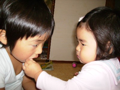 10月11日(木)今日の奏衣のお昼は麺類だったので奏衣に食べさせてみたよ案外上手に食べててビックリさせれば出来るんだよね恵翔の時にはとにかく汚れるのが嫌でさせなかったんだけど本人にやらせてあげる事は大事な事だよね*******************************10月12日(金)今日の恵翔は幼稚園に行く前に「奏衣にミルクをあげる」と奏衣にミルクをあげてくれたよそれと今日は車に念願のテレビが付きました~と言っても多分、恵翔がDVD見るだけだと思うけど。。。**********************************10月13日(土)今日は午前中に、空港の近くの公園へ自転車も持って行って練習もしたよ奏衣は芝生の上で、一生懸命草で遊んでたわ恵翔はお父さんが見つけてくれたバッタにビビリ気味(笑)幼稚園でだんご虫を捕まえたりはするみたいだけど虫は結構苦手な恵翔です今日の恵翔と奏衣午後は三輪車と自転車でアクアのお散歩へ今日もいっぱい遊んだよ********************************10月14日(日)今日で恵翔が3歳11ヶ月になりましたあと1ヶ月でいよいよ4歳だよ~毎月14日にはちゃんと記念に残るように写真を撮ってるんだけど、今日はうっかり忘れてしまっていた私気が付いた時には恵翔は夢の中しかも寝顔がビックリする位ヤバくて(笑)でも撮っちゃいました********************************10月15日(月)少しづつ冷えてきたので、今日は恵翔と奏衣のものだけ衣替え恵翔はまだ半袖だけど、奏衣は薄手の長袖にチェンジ朝晩はだいぶ涼しくなったけど、まだ半袖でも大丈夫なんだけどね。恵翔の可愛いポーズ奏衣の可愛いポーズこんなに大きさが違うよ~**********************************10月16日(火)今日は、ともちゃんから出産祝いでいただいたオモチャで遊んだよやっと遊べる時期が来たって感じありがとねぇ*********************************10月17日(水)今日は私の整形外科へ少し前にやっとギブスが外れたんだけど、その後の調子はどうかレントゲンを撮りに行ってきたよ結果は良好で、飛んだり跳ねたりという激しい動きはまだ危険だけどとりあえず完治という事でした~それと今日は奏衣を連れて小児歯科へも行ったよ奏衣の指しゃぶりがずっと気になっていたんだけど、右の前歯が少し前に出てきたこのままではヤバイと思って診てもらったんだけどやっぱり指しゃぶりの影響があるみたいだけど今の段階では何も出来ないんだよねそれに、予期していなかった「上唇小帯」とも言われてしまいました上の唇の所の筋が、前歯の歯茎の所まで続いているんだけど2歳から3歳の頃に切らないといけないみたい出っ歯の相談に行ったはずが、かなりビックリした1日でした恵翔のオヤツにたかっている奏衣の図お風呂での2人お風呂上りの恵翔**********************************10月18日(木)今日の夜はおじぃちゃんとおばぁちゃんが来たよ恵翔と奏衣に会いに、しばらくお泊りする事になりましたもう来た時間が遅かったので、恵翔と奏衣はすでに夢の中だったけど明日は起きたらビックリするかなぁ***********************************10月19日(金)今日は起きて直ぐに恵翔が気付いて喜んでたよおじぃちゃんとおばぁちゃんが大すきだもんね朝からおばぁちゃんは遊びに付き合わされて大変そうだったけど恵翔や奏衣を見ててもらえると、家事がはかどる今日は幼稚園のバスも一緒に見送ってくれたね帰ってきてから2人でオヤツ最初は警戒してた奏衣も、ずっと一緒に居るとやっぱり慣れるようで(笑)おばぁちゃんっ子に変身家事がゆっくり出来て、かなり快適(笑)恵翔と奏衣も喜んでるし、私も余裕が出来ていい感じ本当にありがとうございます**********************************10月20日(土)今日は三輪車と自転車でアクアのお散歩へそして、恒例の公園巡りです1ヶ所目の公園でそして2ヶ所目の公園恵翔も奏衣も楽しめたみたいで何より奏衣もブランコが楽しかったみたい**********************************10月21日(日)今日の午前中は、おばぁちゃんと私達で買い物へ旦那は靴私はロングカーディガン恵翔はパンツで、奏衣はオムツを買っていただきました。。。いつもいつもありがとうございますそれから近くのラーメン屋さんへそこは旦那と私がかなり気に入ってるラーメン屋なんだけどすごく久し振りだったけど、やっぱり美味しかったそれから夕方に家族でイオンへイオンも久し振りで、帰宅がすっかり遅くなってしまったよ