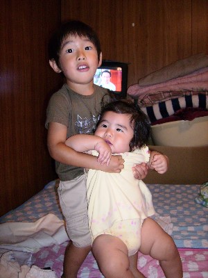 10月1日(月)昨日、久し振り熱が出て心配してた奏衣ですが・・・今日にはすっかり熱も下がっておりました指しゃぶりが辞められない奏衣*****************************10月2日(火)今日は子育て支援センターの運動会奏衣、初めての運動会だよぉまだアンヨが出来ないので、奏衣はハイハイ競争の参加。だけど座ったまま動かず・・・人の多さに圧倒されてかとにかく動こうとしない奏衣在園児からの「頑張れ~」の応援を貰ってようやく思い腰を上げてくれたわ今日は幼稚園から帰ってきた恵翔が「熱測って」って言ってきたよ。自分から言うって事は、本当にきつかったんだろうね案の定熱がありました7月以来の熱だわ。園でも熱を出す子が増えてきたって言ってたからねとにかく早く熱が下がるといいけど。********************************10月3日(水)恵翔の熱は下がらずそれ所か、上がる一方恵翔は熱を出すと、かなり長引くんだよね7日の運動会がいよいよ怪しくなってきたよ今回はよほどきついのか、グッタリ気味1日も早く熱が下がりますように少し楽になったと起きてきた恵翔。今日は奏衣自らロッキングチェアに座っててビックリ誰が乗せたかと思ったら、自力で座ったみたい(笑)片足が上がったままだけど******************************10月4日(木)やっぱり今日も熱は下がらなかったわしかも、まだ39度台だしこれだけ熱が続くと、本当にキツイだろうけど変わってやれない所が親としても辛いわね今日の恵翔も食欲なさげ。でも梨を切ってあげると食べてくれたよ奏衣もすかさず食べてたけど(笑)********************************10月5日(金)今日は恵翔をに連れて行ったついでに奏衣も麻疹風疹の混合の予防接種を受けてきました~針を抜いた瞬間から号泣でしたわ恵翔は喉が少し赤いって言われたけどウイルス性の風邪だろうとの事。とにかく熱が下がるのを待つしかない奏衣は今日までテーブルなどに上がっても、自分で下りる事が出来なかったのに病院の椅子に座ってて、普通~に足から下りてたよ本当は下りれたらしいいつも近くにいるから、甘えて下ろしてもらってただけみたい。自分で下りれるようになったのなら、少し心配も減ったわ昨日の仕事帰りに、お父さんがお土産で買ってきてくれた「仮面ライダー電王」見た事ないんだけど音も出るし、恵翔はとても喜んでたよ***********************************10月6日(土)今日も恵翔は熱が下がらないままそろそろ熱も下がり出すとは思うけど・・・明日の運動会は出られそうにないわ今日は恵翔が、奏衣にミルクをあげたいと言うのでお願いしてみました奏衣はお兄ちゃんが大好き奏衣が可愛いポーズをするようになったよそれと気付いたのが、毎回のお風呂でガーゼを使うんだけどお風呂からお父さんが「奏衣~いいよ~」と呼ぶと、ミルクを飲んだ時に使ったガーゼを自分から手に持って、ハイハイしてお風呂に行くよ最初は偶然かなとも思ったけど必ず探してガーゼを手に持ってハイハイして行くし呼ばれたら自分で準備して行くから、親として助かるわお父さんのヘルメットを被る恵翔そうそうそれと、今日の夜に連絡網が回ってきたんだけど、明日はなので、月曜日に運動会が延期になったよある意味ラッキー明日だったら、間違いなく恵翔は運動会に行けなかった1日延びた事で、もしかすると運動会に行ける可能性大***********************************10月7日(日)恵翔の熱は下がっておりました~だけど、今日が運動会だったら出れなかったよ。明日に延期になって、本当に良かった~元気になった恵翔何か変な顔なんだけど***********************************10月8日(月)今日の恵翔は朝から元気私も張り切って朝から一生懸命お弁当作りをしたよ運動会前に3日幼稚園を休んだので、きちんと運動会の流れとか分かってるかなぁと心配だったけどそんな親の心配はいらなかった年少さんのダンスは元気に上手に踊れてたよ見ていて可愛くて、成長したなぁ~って改めて実感かけっこも頑張ってました年少さんは、本当~に可愛かった初めての運動会にアタフタした様子や、可愛い失敗など、見ててとても可愛かったよ来年は年中さんになって、しっかりした運動会になるんだろうなぁ。。。なんて考えると成長が寂しいような、嬉しいようなもっとこの位の可愛い感じを見たいけど、子供はどんどん成長していくんだよね。今のこの時期をもっともっと大事にしなきゃいけないね。頑張って作ったお弁当恵翔と奏衣今日はとってもいい運動会になったよ*********************************10月9日(火)今日は、昨日の運動会の代休で幼稚園がお休みでした1日中恵翔は喋る、喋る・・・本当にお喋りが大好きで、関心するわ仲良し兄妹**********************************10月10日(水)今日は結婚記念日でした丸5年で、6年目に突入~最近サボり癖のついた私は、宅配ピザを利用(笑)それ以外のものはさすがに作りました今日の恵翔と奏衣