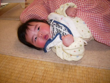 2月26日(月) 恵翔、またも発熱今回は38度台と、それほど高くはないけれど、顔が真っ赤早く治るといいね。 2月27日(火) 恵翔の熱は1日だけで、今日は下がってくれました~でも念のため、支援センターはお休みする事に 今日は新しく購入したビデオカメラが届きました使ってたDVDのが調子悪かったし、奏衣も生まれて、恵翔も入園する事だし、思い切ってハードディスクのビデオカメラを買っちゃった 奏衣の足が長くなっちゃった恵翔に「かなちゃん、う○ちしてない」って聞いたら、布団に潜りこんでチェックしてました(笑)その姿が余りにも可愛くて撮っちゃいましたそうしたら足の長い奏衣になっちゃった(笑) 2月28日(水) 今日はドラッグストアの栄養相談でした。体重・身長を測ってくれるし、ミルクなど貰える所が嬉しいやっぱり奏衣の体重はだな。。。全くもって寝返りをするつもりがないみたい恵翔に比べて、全てにのんびりのマイペース型だなそういう私も恵翔の時に比べて、離乳食の進みが全然そろそろ離乳食を進めていかなきゃなぁ。と、今日は離乳食をあげてみる事に(笑)完全拒否でした3月1日(木)今日の支援センターはお雛様作りでした恵翔と私はお雛様作り奏衣はひたすら静かにしておりました3月2日(金)夜から実家に帰るので、今日は大忙しやっぱり赤ちゃんを連れて帰るのは荷物が多い3日が初節句で、実家でお祝いをするのだ自宅を出たのが7時頃だったかなぁ。途中で温泉に入って帰ったので、実家に着いたのは11時過ぎでしたみんなに会えるのが楽しみだ0時近かったのに、ブロック遊びをする恵翔。。。3月3日(土)今日の午前中は、母が入院している病院へ手首を複雑骨折して、1月末から入院してるんだ~。午後は、夏に恵翔が通っていた幼稚園へ自由登園なので、お友達は2人だけでしたそれでも恵翔は大好きな先生に会えて満足したみたい初節句祝いは夜の7時からで、久し振りみんなに会えて楽しかった~お祝いも沢山いただきました今日の恵翔と奏衣3月4日(日)午後から昨日出席出来なかった親戚の家へお祝いを貰ってたので、お祝い返しを持って行ったよ奏衣は初対面帰りに汽車の食堂でお昼を食べて、自宅に戻る事に帰りに温泉に入った所で休憩自宅へ着いたのが8時過ぎだったかなぁ。とにかく疲れた3月6日(火)最近の奏衣のお気に入りは風船今日の恵翔と奏衣3月8日(木)今日は支援センターでビックリする事を言われてしまったというのは、4月から同じ幼稚園に行くママからの言葉。「用品取りに来なかったね」って。実は6日は用品渡しの日だったすっかり忘れていた私は、連絡もしないままでした支援センターの後にしっかり受け取ってきました今日の奏衣今日の恵翔と奏衣3月9日(金)今日の仲良し兄妹今日は旦那の誕生日でしたと言っても、祝える歳じゃない(笑)夜はお寿司を食べに行って、ケーキは手作りの簡単アップルパイかなり手抜き(笑)3月10日(土)今日は朝からメロンパン作りに挑戦バターロールの上に生地を乗せて焼くだけの、簡単メロンパン今日は休みだったけど、でのんびり。私の花粉症も酷いままだし恵翔は旦那に基地を出してもらって、奏衣を連れ込んで(笑)ました3月11日(日)今日の午後は旦那は草野球花粉症で辛いので、私と奏衣はお留守番旦那は恵翔を連れて草野球に行っちゃいましたあ~のんびり出来る今日の奏衣3月13日(火)今日の支援センターは身体測定でした奏衣の体重は相変わらず気味。寝返りもしないし、重くて動けない寝返りすれば少しは締まるかな(笑)恵翔の身長もやっぱり低め今日のひげ奏衣3月14日(水)今日は本当は三種混合の2回目だったんだけど、奏衣に湿疹が出来てたために、様子を見ることになったよ。出来なくて残念恵翔も赤ちゃんの頃から肌が弱かったけど、奏衣も弱い