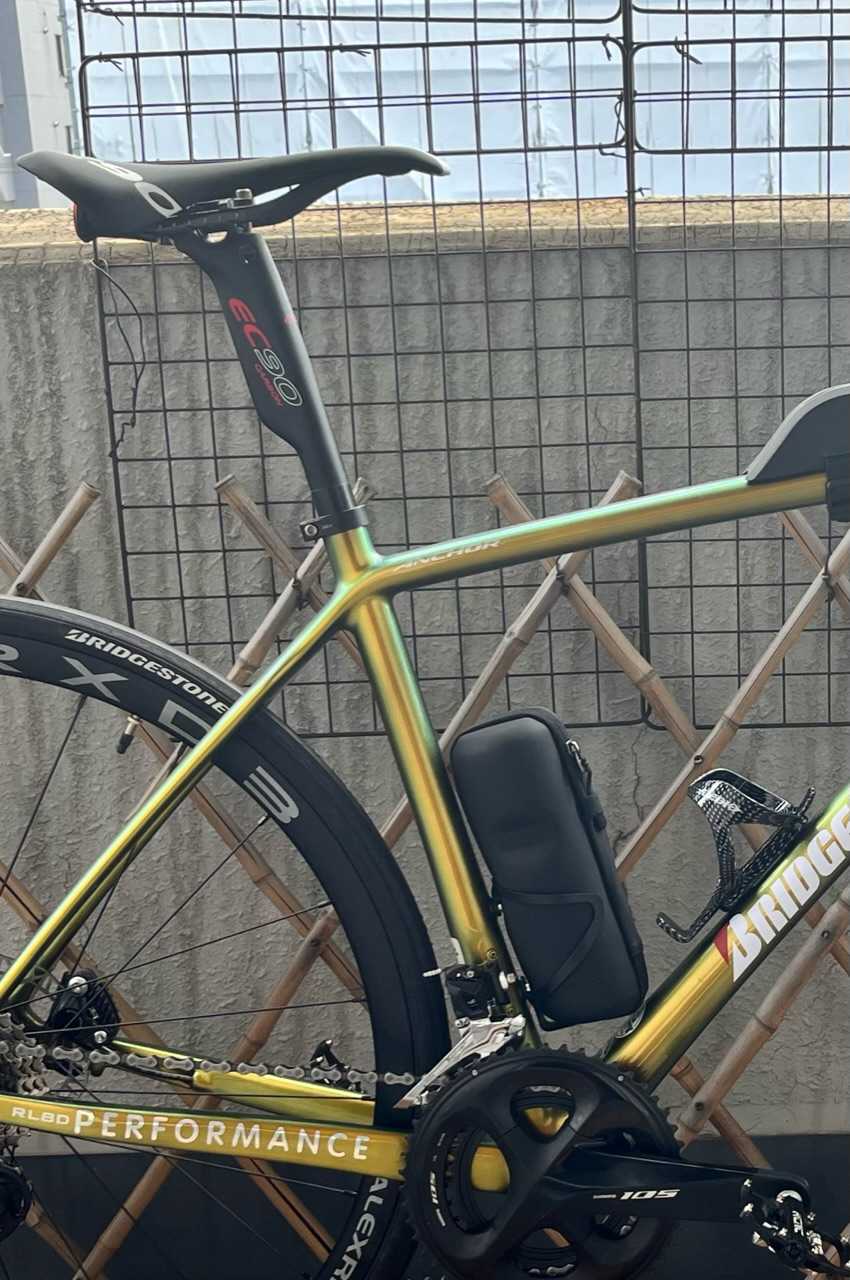 トップチューブバッグ、ボトルゲージは黒で統一。