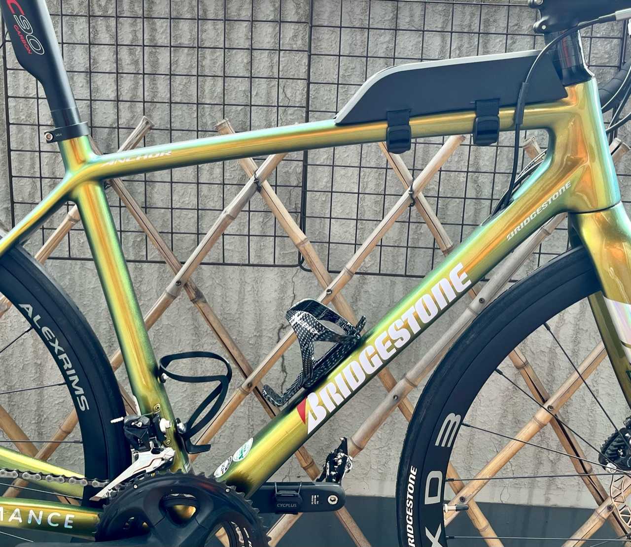 トップチューブの上に付けたバッグ ​が、