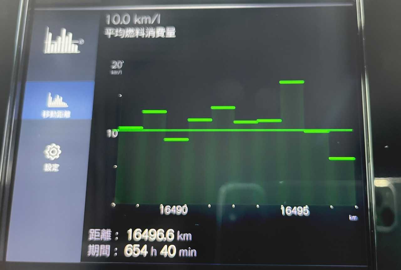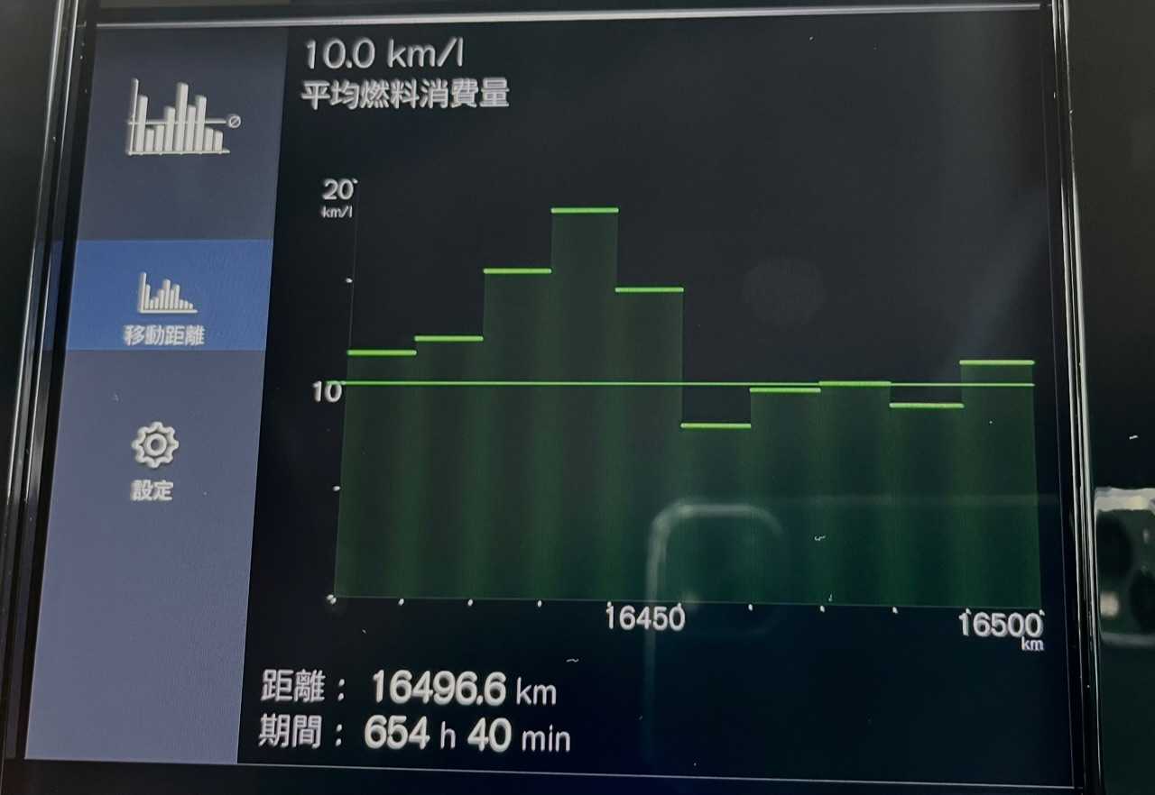 はい、今回は「XC40 B4」の燃費表示画面と、