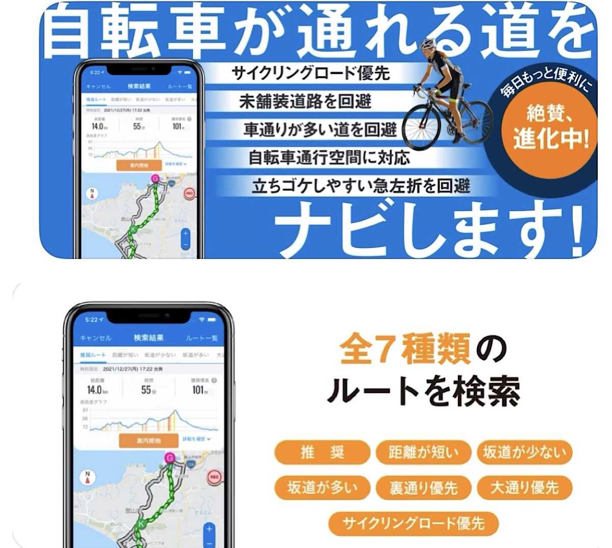 「自転車が通れる道をナビします!」