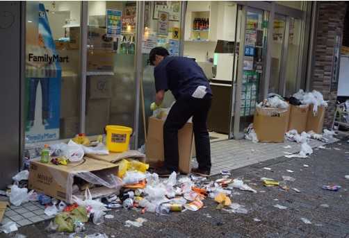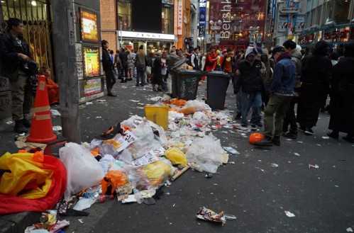 ハロウィンでゴミを捨てる人、