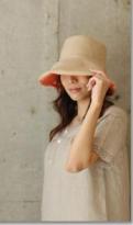 つば先から覗く 裏地の爽やかなカラーが ポイントです。