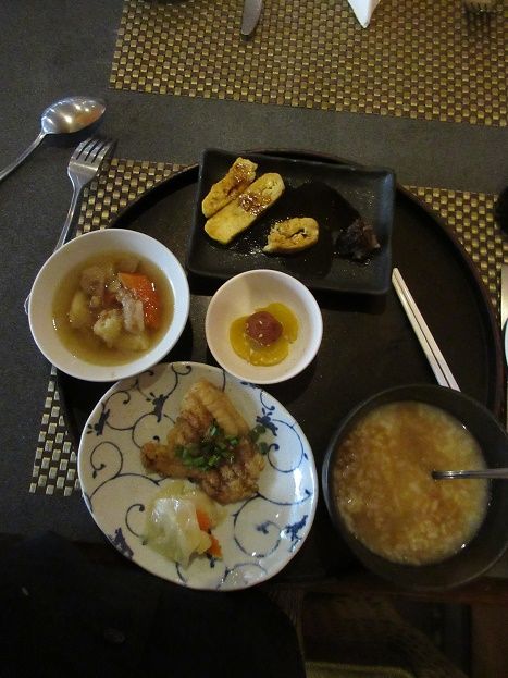 その後出て来た お粥定食 はお醤油に浸して流し込みやす朝から貪欲やね