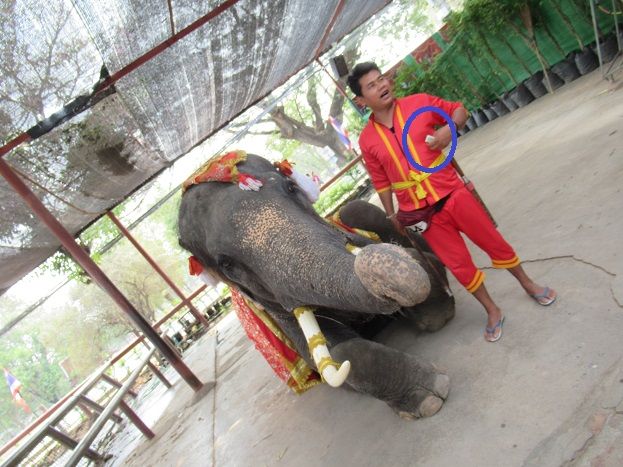 2枚目の 青〇は現地の象遣いさん やけど、客から象が戴いたチップ(20B札)の