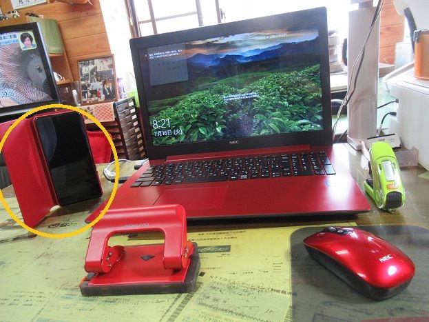 手にして来たのは 3年振りに入替えたスマホ(黄〇 。アクオスのR=3って