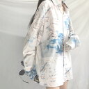 【即納あり】マップ パターン 地図柄 ビッグシルエット 長袖 シャツ ブラウス 【お取り寄せ注文可能】 原宿系 ファッション レディース ゆめかわいい 服 奇抜 派手 個性的 ダンス 衣装 コスチューム ヒップホップ 韓国 大きいサイズ