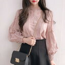 【メール便送料無料!】オーガンザ生地リボン付シースルーブラウス/トップス カットソー シースルー フェミニン オフィス 通勤 パーティー お呼ばれ 結婚式 デート 上品 レイヤード 着回し インナー シャツ