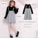 ワンピース フリル レイヤード 秋 キャンディスリーブ リボン フレア ロング ショート 可愛い ホワイト ピンク ブラック 白 黒 無地 チェック M L LL 3L レディース 夢展望【WB】【SALE】◆入荷済