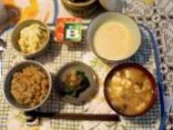 昨日に続いて勉強会&打ち合わせです。スケジュール通り朝8時までには起床。。またまたsatchinが朝食を用意してくれました!もう感激だな~ 和食の朝食 ♪玄米炊き込みご飯(玄米、押麦、ごぼう、にんじん、油揚げ) ♪味噌汁(なめこ、ねぎ、油揚げ、豆腐) ♪納豆(ドラゴンズ納豆、卵) ♪ほうれん草の胡麻和え(ほうれん草、すりごま) ♪ジャガイモのしゃきしゃきサラダ(ジャガイモ、ハム、きゅうり、にんじん、卵他) 【アールエフワン製】 ♪ヨーグルト(ダノンBIO)9:00~12:00 勉強前日にかなりハイペースで進めたので、残り1コマ。衛生管理の項目を終えて、すべてのカリキュラムは終了です!!12:00~はランチ&打ち合わせの予定でしたが、勉強後すぐにそのままセミナーの打ち合わせに入ったので、ランチも忘れて案作りです。途中、ちょっと一服しましょう!ということで和菓子で一休み。 秋栗とぎゅうひの紅葉ロール「豆とろう」製ロールケーキに添えられているのは、金時豆の煮豆。スーパーで買ってあったものとかで友人が素敵に添えてくれました!普通は箸休めのおかずですが、こうやって和菓子にちょっと添えてみるとまた違った感じになるのですね~。さすがsatchin!!甘いもので疲れを癒して再びセミナー案作りです。ここからがすごい展開に・・・・これからの活動に必要と思われる活動名??(・・いずれこれが社名になる?)やロゴ、そしてHPの立ち上げなどなど。。。HPの大枠もあっという間にできたので、あとは私がイメージを絞りこみ、文言などを考えて、それをアップしてもらえれば完成です!それにsatchinは私の名刺までデザインしてくれました。今後のこちらの活動の際にはこの名刺を使用、HP完成後にアドレスを入れればこれも完成!!(・・・全く予想外の展開よ)ほんとsatchinすごいんだよね~。あっという間にデザインをPCで作ってしまう・・・セミナー案の打ち合わせがここまできちゃうなんてほんと予想外なんですが、何だかとってもこの先が楽しくなってきちゃいました。すっかり熱中してしまって、気付いたら17時。外も暗くなってました。。。「残りもので良かったら夕飯食べていったら?」という、これまた優しいお言葉に私ったらまたまた甘えてしまうことに。再び、昨日購入したMy箸置き登場です。 ♪朝の炊き込みご飯にひじきを加えたものらしいのですが、すっかり違う感じのものよね~ ♪味噌汁は朝と同じ・・・とろみが出ていて、これまたおいしい! ♪大根といわしつみれの煮物・・・薄味大根も美味、そしていわしのつみれもGood! ♪きんぴらごぼう ♪玉ねぎの卵とじ(隣の写真よ) ♪ぬか漬け残りものって・・・もうバランスバッチリの献立ですよ。今日の朝食と合わせて完璧でしょう!あ~何だかいいな~。普段の夕食は当然家では一人、休日も予定がなければ夕飯も自宅で一人。一人だと作ってもあっという間に食事が終わってしまうし、ちょっとむなしいんですよね。やっぱりこうして食卓を誰かと囲むのはいいな~って思ってしまいました。。。そうだよね、satchin!! お風呂にまで入れてもらって(何と言う甘えっぷり!)、私はそのまま帰宅。おかげで帰宅後は洗濯ものをたたんで片付け、明日の朝食のご飯を洗ってしかける。そしてこのブログアップ・・のみ!!ラ~クラクですよ。今回2日間に渡り、本当にお世話になりました。とにかく日々色々と忙しく、平日はほとんど勉強もままならずだったので日も迫ってきて実はかなりここにきて焦っていた私。最初は「まぁ~ある程度知ってることだし大丈夫かな?」なんて思っていたのですが上の級だけの受験に絞ってからテキストを見てガ~ン!!いやいやすっかり忘れていることも多く、これはまずい!!と思っていたのですが今回ポイントなども含めて教えてもらったことで、かなり絞って学習できそうだしちょっとだけ安心しました。。。・・と言っても、やっぱり覚えることは満載ですが・・・本当に友人には感謝です!!昔からいつも私が助けが必要な時には手を貸してくれるのです。こういう人達に私は支えられてきているんだということを改めて感じ、そして心から感謝の気持ちでいっぱいです。あとは試験をパスすること、そして来年の食セミナーをまずは成功させること、そして今後の活動も益々発展していくことを目標にがんばっていきたいと思います。satchin! 本当にありがとう。そしてこれからもがんばっていこうね!!!(仕事だけでなく、すべてにね~)