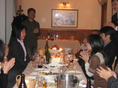 昨日はまたまた高校の同期会でした。一体年に何回やってるん?って言われそうですが。。今回は同期の一人、梅ちゃんのお誕生日とも重なったので密かにサプライズも企画。それに合わせて、仕事関連で融通が利くからと同期の一人がお店をアレンジしてくれて、私たちにしてはちょっと素敵なレストランにて開催。場所は原宿の「ベニーレ・ベニーレ」実は今回同期会の連絡メールリストにはない人たちが数名参加してくれたのです!「一体どういうルートで知ったの?」って・・・皆さん、それぞれがひょんなことで・・・って感じで、これまた同期の輪が広がったね~って、皆大喜びでした!本当に素敵な広がり、そして集まりです。そうそう、肝心のサプライズ。。突然部屋の明かりが消され、素敵なバースデーケーキが登場。 ハッピーバースデーご本人は当然びっくり!でも「こんなに素敵なバースデーはここ10年くらいないわ~」って。あらら・・・10年とは・・・(^^)だけど、こうして喜んでもらえると、企画した方もとっても嬉しいです。そしてケーキを囲んで記念撮影。 この写真は、来年発行予定の同窓会報誌に掲載予定です!!あと、ちょっと嬉しい話題。。。母校が何でも来年の春の甲子園で、21世紀枠ということで推薦されているとのこと。もちろんまだ決定ではないので、ダメかもしれませんが、万が一、出場となったらもう何を置いても皆で甲子園応援ツアーだよね~って。「もう自分達が生きている間に見れることはないんだから!!」って。これには皆で大盛り上がり。真面目な話、バスをチャーターしてアルプススタンドに陣取りますよ。何が何でも行くよね~って。。。もう毎日祈ろうかな~(^^)実現したら、大阪で関西地区、そしてきっと地元愛媛からも皆やって来るだろうから、合同大同期会を開催しよう!!って。。あ~実現すると楽しいだろうな~ということで、今回も楽しい会でした。最後はカラオケで締め!「どんなときも」を全員で歌い、解散したのでした。<おまけ>お誕生日だった梅ちゃんから逆にプレゼントを頂きました。手作りの「クリスマスツリー」です。本当に器用だな~。どうもありがとう!早速飾ってます。