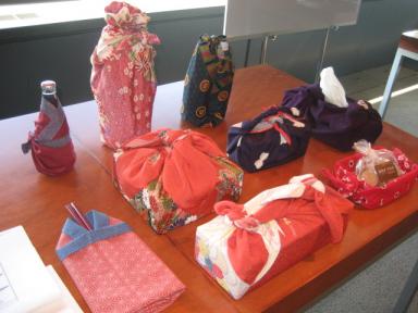 今日は会社で「環境」をテーマにしたイベントを行いました~短時間での企画や手配などほとんど一人でこなし、かなり大変だったのですが、何とか無事終了!(^o^)丿環境問題は非常に深刻化しているので、ちょっとしたイベントではあったのですが、これを機会に再度自分の生活なども含めて考えてもらえたらなぁ~と思い内容も組み立ててみました。その中で、「風呂敷」などの布を見直してみるのはどうかな?と思い、今回は風呂敷等を使った包み方などの例などもいくつか作って並べてみました。 お土産にも「風呂敷」を用意。皆さん、「自分ではなかなか買わないけどもらえると嬉しいな~」となかなか好評でした。私も今回調達するにあたり色々な風呂敷を見て、「なかなか素敵だなぁ~」と思うと共に、「結構色々な使い方ができるのね」と改めて風呂敷の良さを見直しました。環境についても、もっと真剣に考え、少しずつでも自分ができることを実行していかなければならないですね。ずっと慌しい日々でしたが、何かをやり遂げた後の気分はやっぱりいいな~。。そして安堵感(^^)・・・でもちょっと疲れました・・・