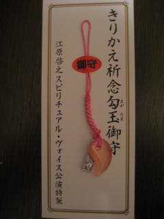 江原啓之さんの「スピリチュアルボイス」~人生の切りかえ方~に行ってきました。実は・・・このチケット、先行予約で取り損ね、一般売りでは完売で取れずで「今回は残念だけど~」と思っていたら・・・・会社の人が「用事で行けなくなってしまったので、良かったらどうですか?」ってメールをくれて、行けることに!!本当、声をかけてくれて感謝です!(やはり、色々な人と色々な話しをしておくことは必要なんだな~と、こんなところでもちょっと思ってしまいました・・・)それも席が最前列!目の前に江原さんです。思っていると、やってくるものですね~「引き寄せの法則」江原さんも言ってましたが、「今日ここに来たのは偶然ではなく?」「必然!!」(会場の人たちが一斉に・・・新興宗教のようですわ~)江原さんの本は色々と読んでいるし、昨年も同じようなイベントに参加したりもしているので、基本的に話をしていることはわかっていたりするのですが、生でそして改めて聞くことでグッと入ってきます。途中、カラダが何だかゾクゾクしたり、何だかウルウルくる瞬間があったり。。う~スピリチュアル!「人生ダラダラ、ボヤボヤしていたらあっという間に終わってしまいますよ」って。はい、その通りです!「人生は感動と経験の旅」とよく言われています。たくさん感動をした人、経験をした人は人の痛みや気持ちもよくわかるもの。経験から学ぶことは何にも変えられない、確固とした自信にもなります。「人生に無駄はない!」・・・いつもこの言葉を私も忘れないようにしています。遠回りのように思えることも実はそうではない、自分に必要なことなんだと。。今回、各座席に袋が置かれていたのですが、その中に入っていたものがこれ↓ 色も何色かあるのですが、それぞれに意味が・・今日のメッセージだそうです。ちなみに私のものは「ピンク」「柔和な心を持ちましょう。女性なら女性らしさを持ちましょう」ですって。。あ~ん。。。女性らしさ、やっぱり足りない??ダメダメ・・・がんばらなくちゃ!!またある儀式によって、浄化もして頂きました。まさに「人生のきりかえ」?引き続き、公開カウンセリングもありました。今回は場所の関係で、その人に出てきてもらうことは不可能でしたがそれでも事前に書いておいた「相談内容」の紙をみて、時には霊視、そして一般的な皆にも共通することの話しなど、これもまた聞きどころ満載でした。ちなみに・・・・私と友人は、相談内容の紙は提出しなかったのですが「どうする?書く?」なんて言っていた内容と全く同じことを書いた人の紙を江原さんはボックスから引いてきて、それもそれを書いた女性の年齢が同級生!!江原さん、その用紙をざっと読んで言ったことが「すごい内容を引いてきちゃいました!」って・・・ニヤニヤ笑っていましたが。。もう友人とも大笑い!「まるで私達の聞きたかったことを代弁してくれたようだね~」って。。まさにこれも「必然」ですかぁ~??江原さんからのメッセージはまさに痛いところを突かれている感じでしたけど笑える部分も。。。やっぱりね、人はそれぞれ「役割り」があるわけで皆一緒ということはないし、何が「幸せ」なのかは人それぞれなのです。納得でした!あっという間の3時間!あの空間の中、魂も浄化され(?)、そしてまた元気に現世に戻って来ました~いつも良い話、ありがとうございます!信じるとか信じないとかそういうことではなくて、物事の考え方や見方を変えることで、人生が良く変わっていける・・・・そんなことをいつもたくさん頂けているように思います。今回、チケットを譲ってくれた会社の人にも本当に感謝です!