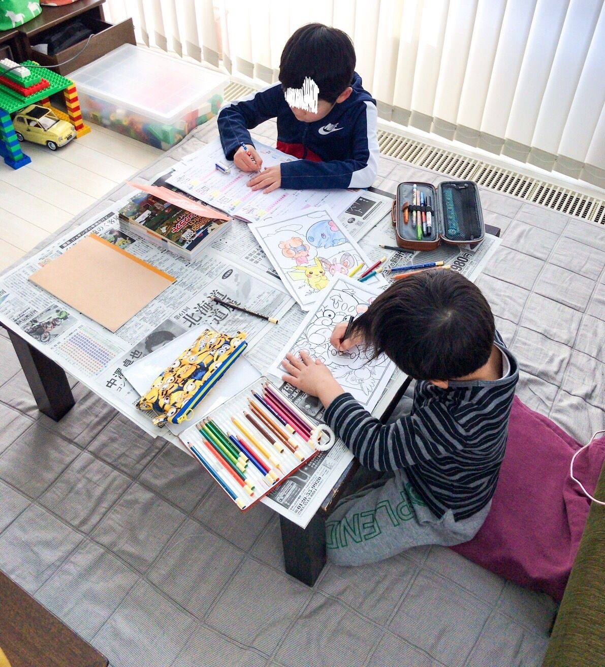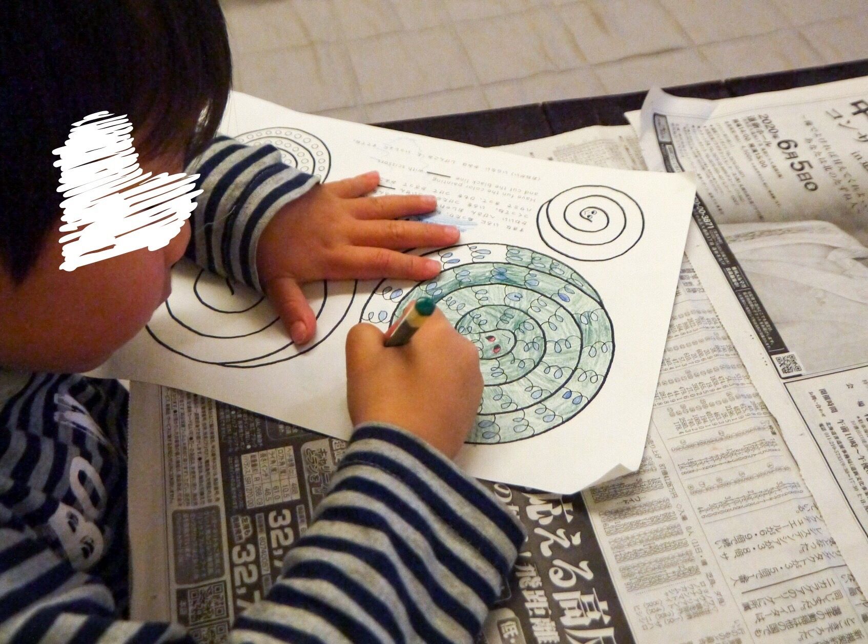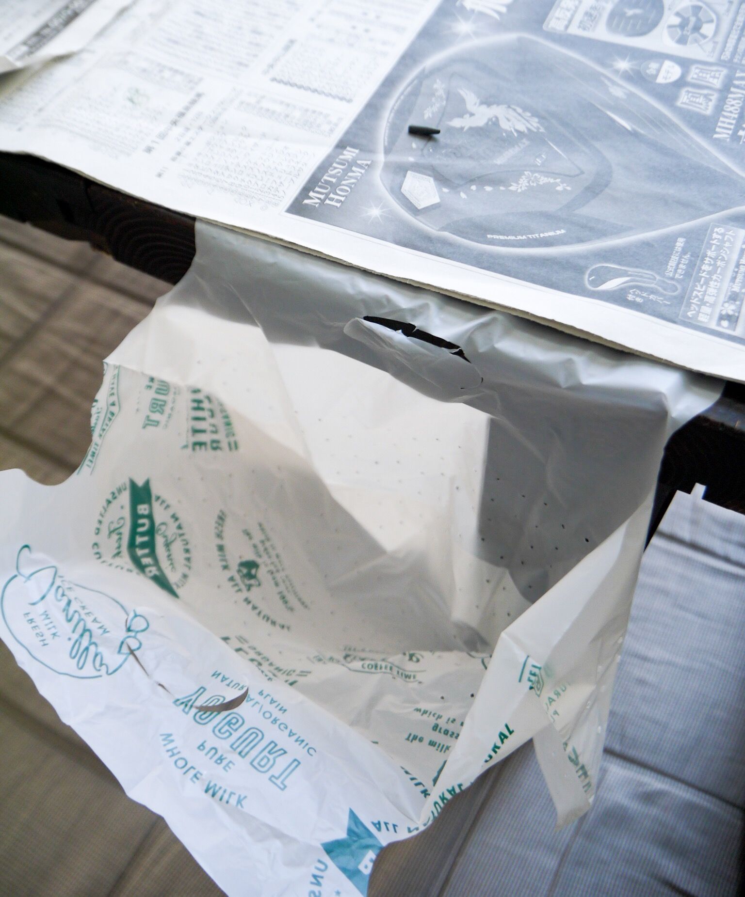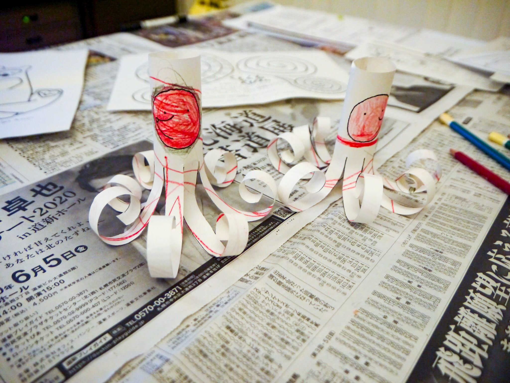 テーブルには新聞を敷いていますが